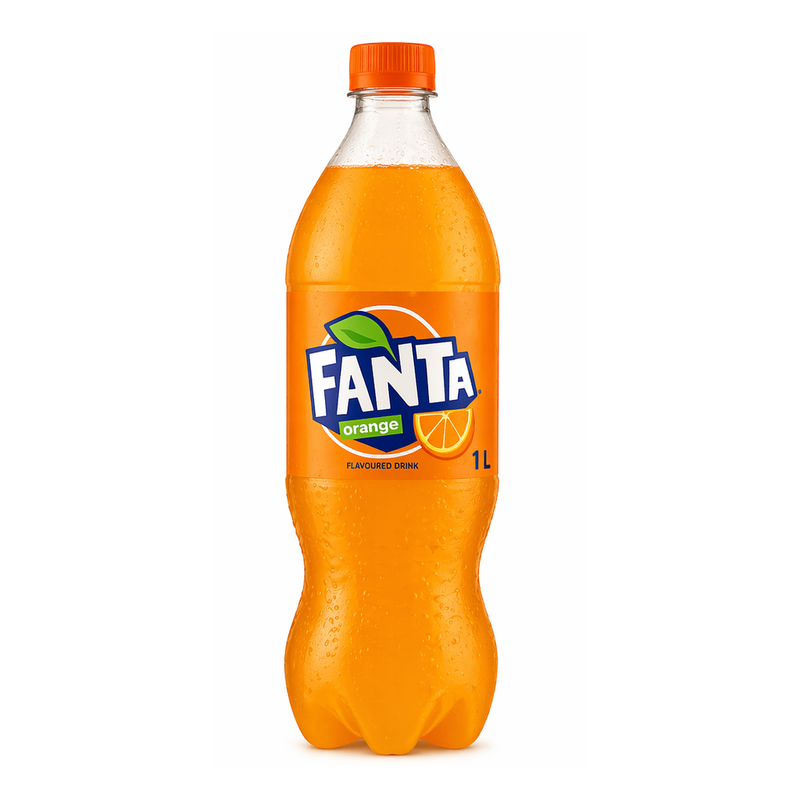 One liter of fanta orange bottle.